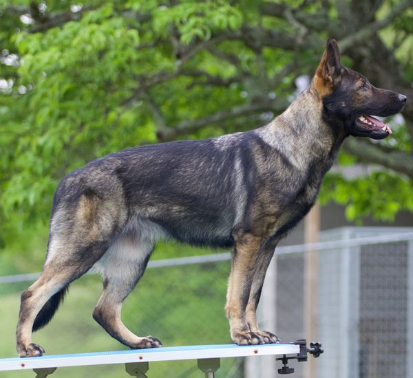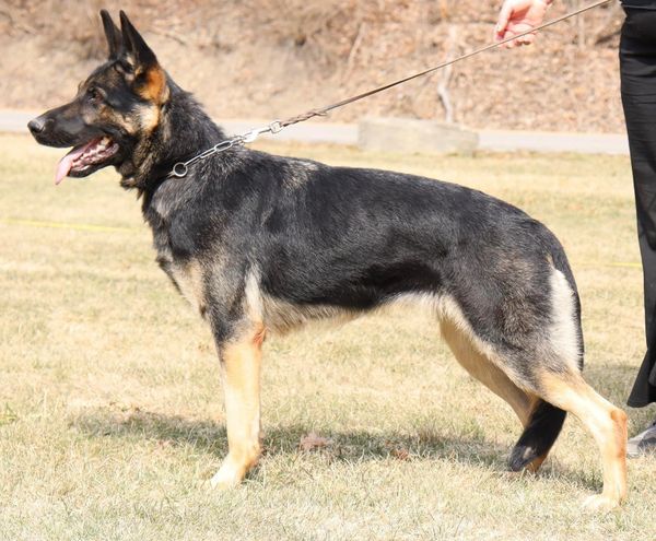 Bresty was imported to us in October 2020 from the Czech Republic. In April 2021 we entered Bresty in the USCA Sieger Show in TN where she earned an SG (very good) show rating from Judge Morton Goldfarb. Bresty is a very strong working female. She is a methodical tracker with flashy obedience, and full, firm grips in protection. In her work she is intense and driven.